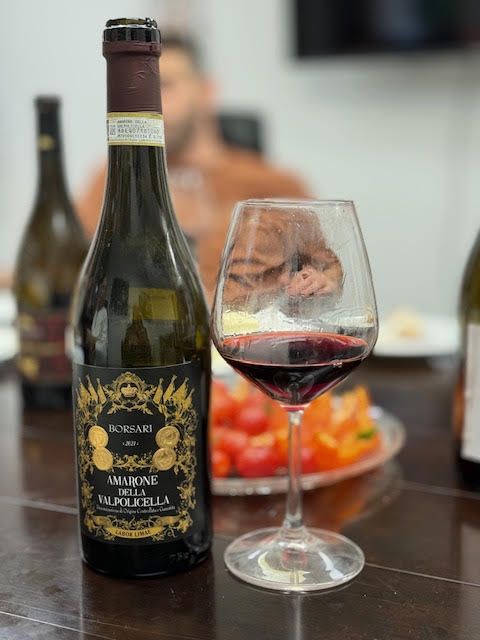 טעמנו אמרונה Amarone Della Valpolicella של Borsari, שעורר עניין והתלהבות מתבקשת מהטועמים. האמרונה דלה ואלפוליצ'לה של בורסרי מורכב מקורבינה, רונדינלה, קורבינונה והוא יין נפלא, הנאמן למסורת בת מאות שנים לאחר שלב המתאפיין בייבוש מדוייק של הענבים למיצוי ריכוז הטעם האידאילי. לאחר הייבוש הראשוני התירוש עובר תסיסה אלכוהולית איטית האורכת כ 60 – ימים ולאחר מכן נכנס היין לחביות עץ למשך 24 חודשים לפחות. גוף מלא, טאנין בינוני, תווים של פטל שחור, תאנה, דובדבן כהה, תווים קלים של תמר, ארז, רמז של צמח מרפא, פירות יער ושזיפים בתוספת לטעמי העץ והתבלינים המתקבלים כתוצאה מתהליך ההכנה הייחודי שלו.