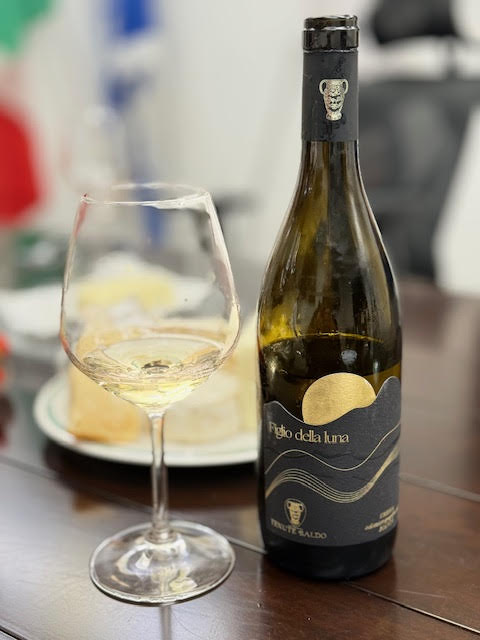 ויין לבן נוסף Figlio della luna שמורכב מ- 70% שרדונה, 15% סוביניון בלאן, 15% טרביאנו. זהו יין לבן יבש העובר תסיסה בסביבה נטולת חמצן כאשר פחמן דו חמצני וחנקן עוטפים את מיכלי הנירוסטה במשך 10 ימי התסיסה שלו. תהליך זה מאפשר השגת טעמים ייחודיים ומבטיח את טעם השלמות של היין בפה. לאחר תהליך התסיסה היין נח עם השמרים ל 5- חודשים נוספים בהם סופג עומק נוסף לפני יציאתו משערי היקב.
